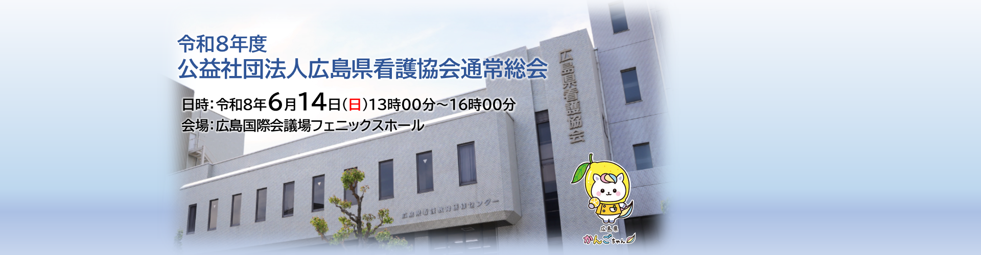 公益社団法人広島県看護協会は、保健師、助産師、看護師および准看護師の福祉の向上を図るとともに職業倫理の向上並びに看護に関する専門的教育と学術の研究に努め、もって県民の健康と福祉の増進に寄与することを目的とし活動しています。